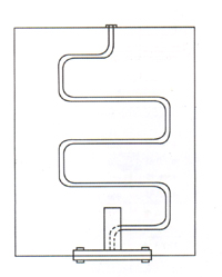 Ⅱ、蒸氣管伴熱:  蒸氣加熱保溫箱,伴熱管是用金屬管制成S型結構.箱體上下采用焊接式穿板接頭與伴熱管焊接而成,伴熱管安裝在箱內為上進下出,通過蒸氣在管腔內的循環(huán)而達到加熱目的,伴熱管材料規(guī)格分為兩種,即φ8×1紫銅管;φ14×2無縫鋼管(碳鋼)。外形美觀,其結構見圖。